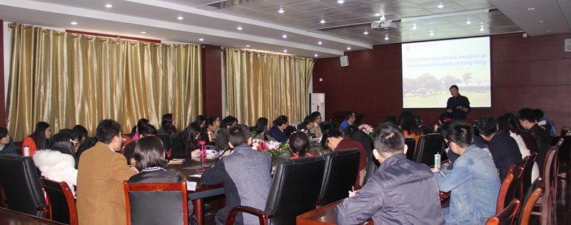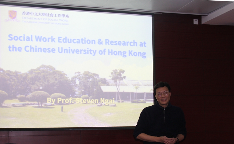 本次学术讲座分两部分,第一部分主题是“Social Work Education & Research at the Chinese University of Hong Kong”。倪教授用纯正英语详细介绍了香港中文大学社会工作系的愿景和使命、社会工作各种学位教育项目、师资、课程设计的国际化战略、国际化的学生实习基地、体验式的学习方式、E-learning、国际化的校友资源、研究团队的研究主题与国际化的合作研究、香港中文大学的用人政策等等。从报告中,大家了解到,香港中文大学社会工作系的课程以及老师们的研究涉及的议题广,涵盖了社会融入、边缘化、少数族群、毒瘾干预、性侵害、老龄化与长期照料看护体系等非常宽泛的社会议题,彰显出社会工作的巨大社会担当和责任。
